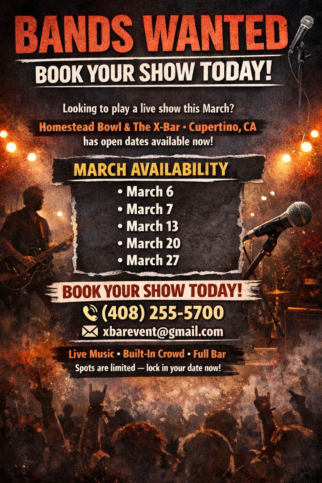 Come experience live music, great vibes, and unforgettable nights at X-Bar @ Homestead Bowl!